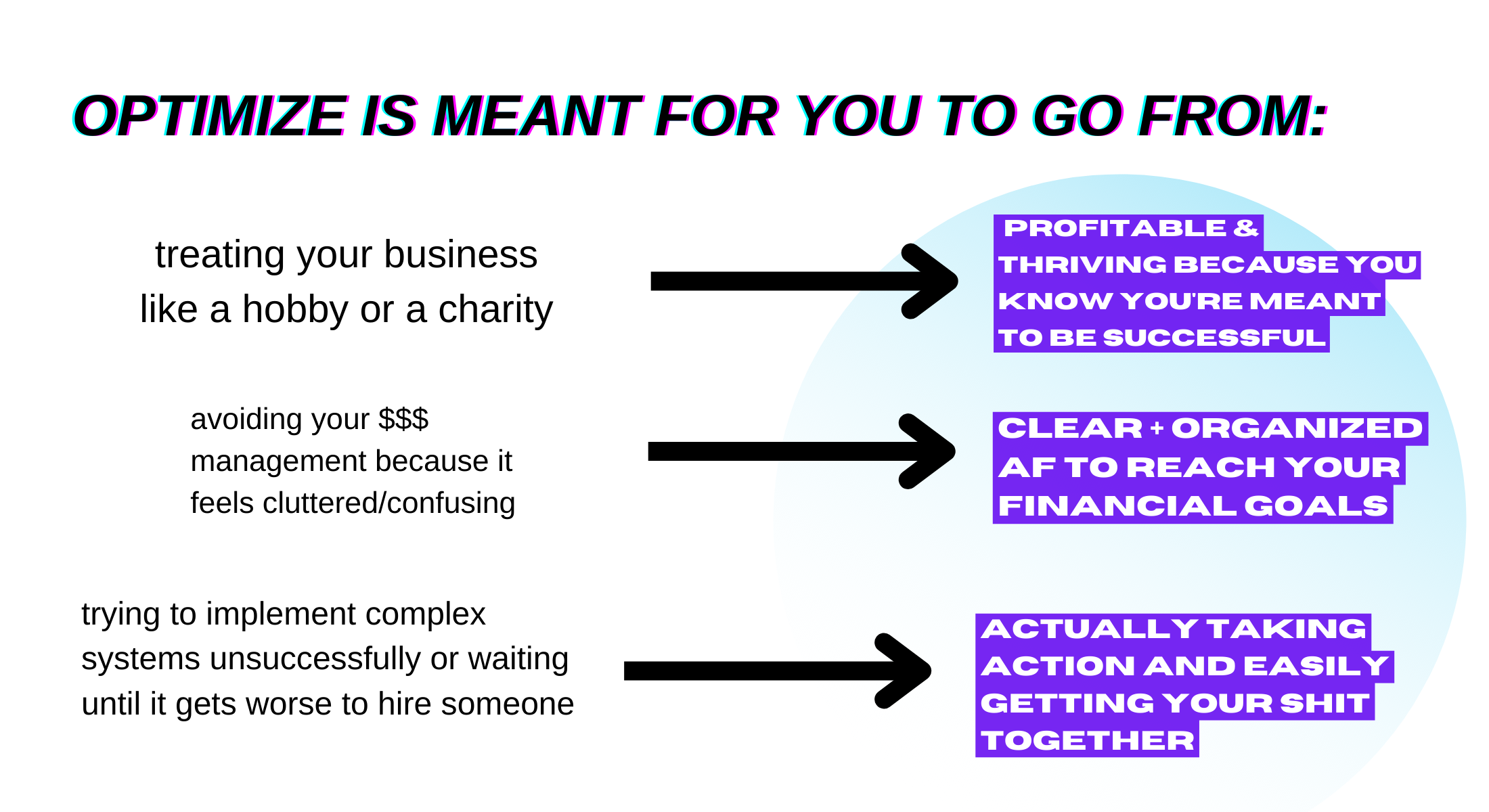 I created OPTIMIZE to give you all of the tools to QUICKLY & EASILY so you can start implementing ASAP!