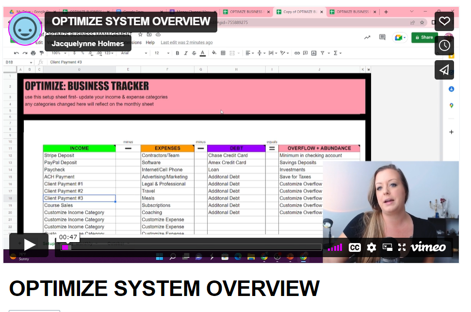 In a sense, this is an alternative to traditional accounting software. I created a google sheet that will provide you a simple system to track your business income & expenses. QB & other software is going to require more professional bookkeeping skills to do it properly, whereas OPTIMIZE is pretty much fail proof if you've used a computer and can follow along with my walkthrough videos.